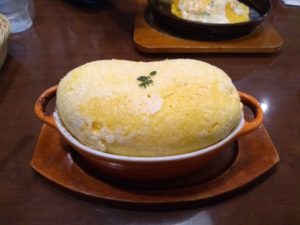 上にふわふわスフレオムライス、下にラザニアという構造で、スフレオムライスは空気をたくさんふくんでいるので蓋の役割がされてラザニアがいつまでも熱いです笑笑
